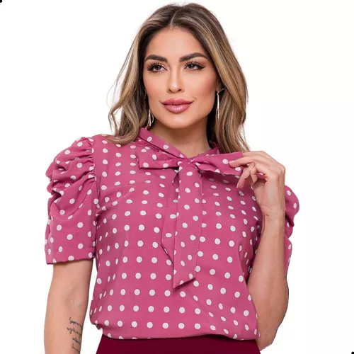 Blusa Camisa Evangélica Social Bolinha Poa Com Laço Princesa.