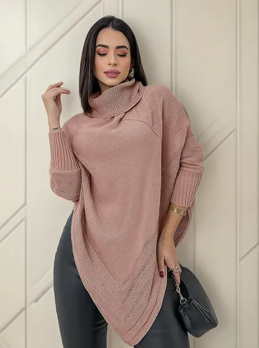 Blusa Tricot Feminina Poncho Kimono Manga Longa Inverno