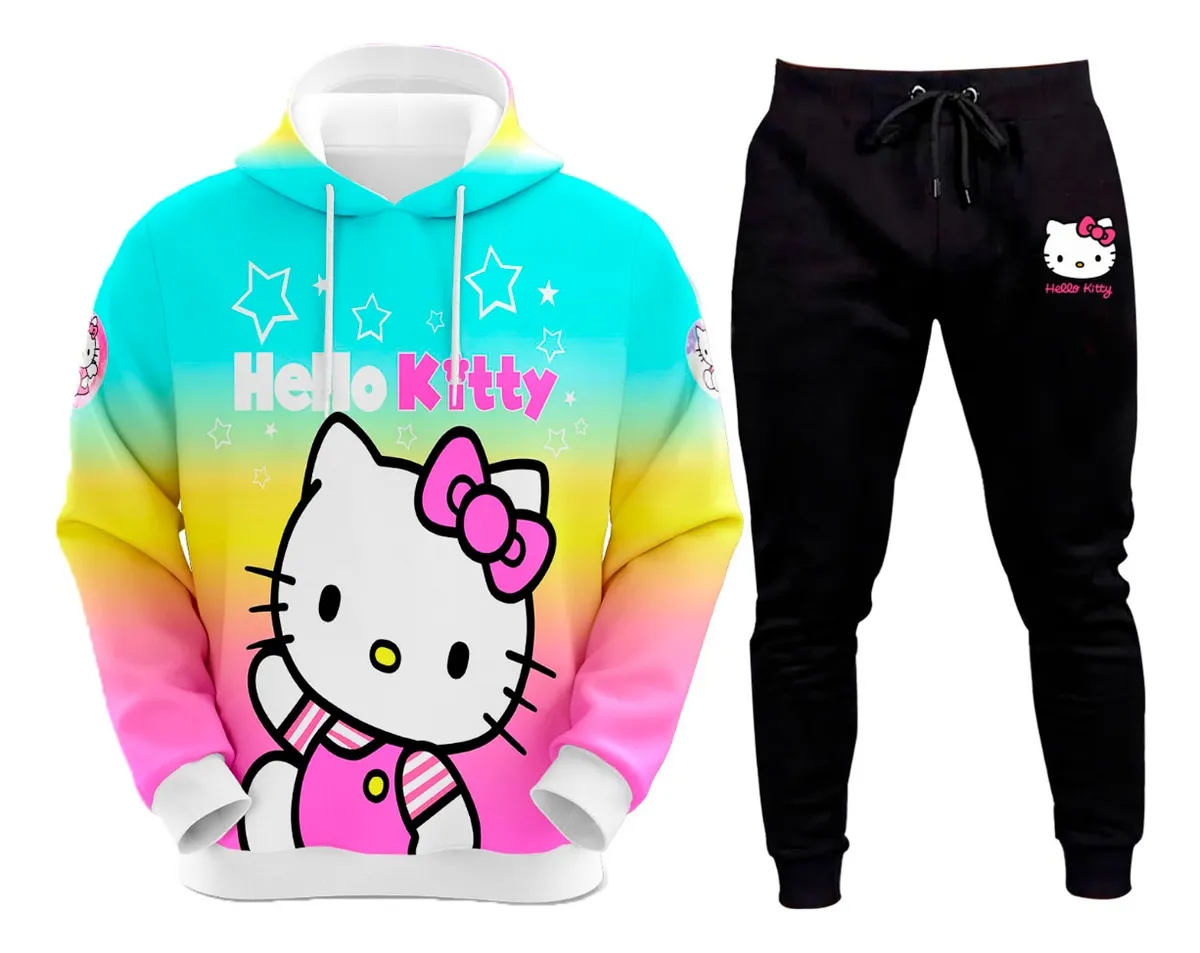 Conjunto De Moletom Colorido Infantil Hello Kitty Gatinha