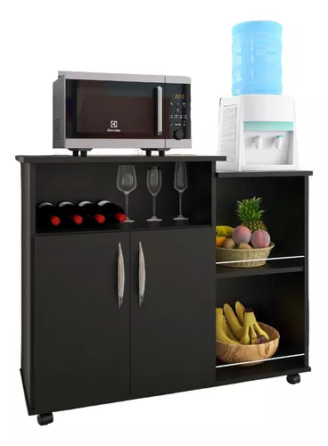 Fruteira Armário para Cozinha Balcão Para Cafeteira E Forno Cor Preto Nova Decor.