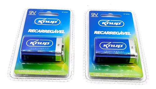 Kit 2 Baterias Recarregável 9 Volts Knup 9v 450mah Original