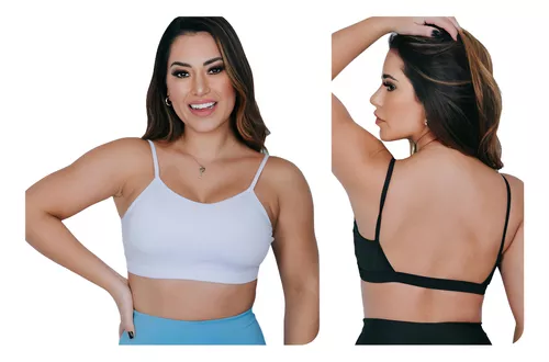 Kit 2 Top Fitness Academia Alça Fina Costa Aberta
