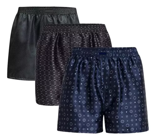 Kit C/3 Cueca Samba Canção Masculino Seda Estampada De Cetim