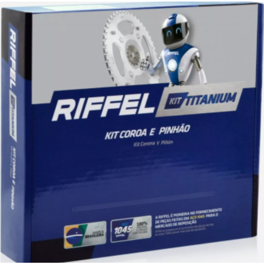 KIT RELAÇÃO COMPLETO (COROA/PINHÃO/CORRENTE) – AÇO 1045 – ORIGINAL RIFFEL