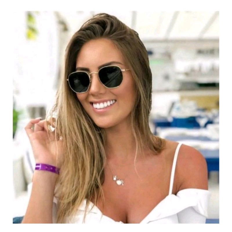 Óculos de sol hexagonal armação feita em metal masculino e feminino.