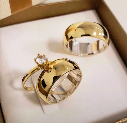 Par Alianças De Moedas Antiga Abaulada 7mm Com Forro + Anel