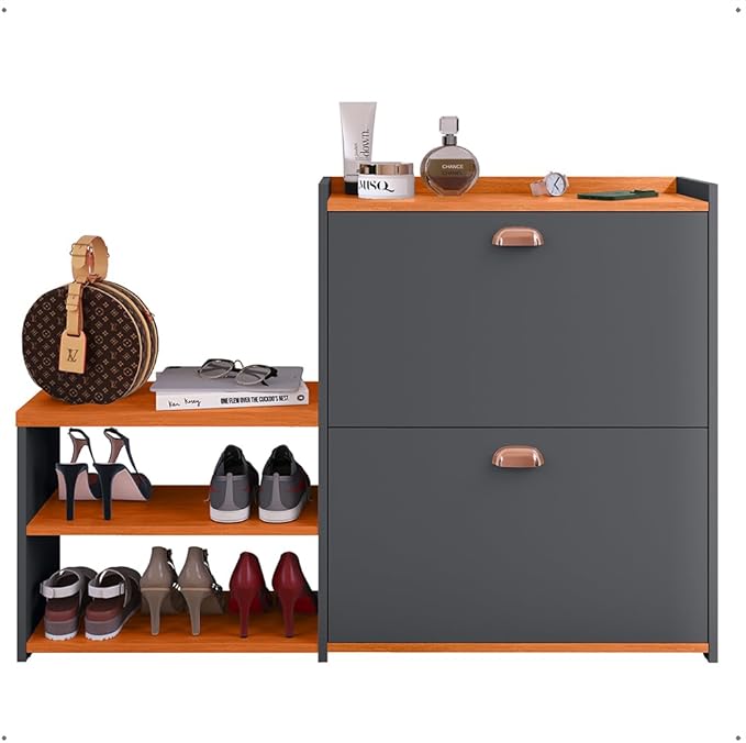 Sapateira Hall Entrada 2 Gaveta Basculante Puxador Concha Banco Prateleira Porta Sapatos Sala Quarto Retrô Milano