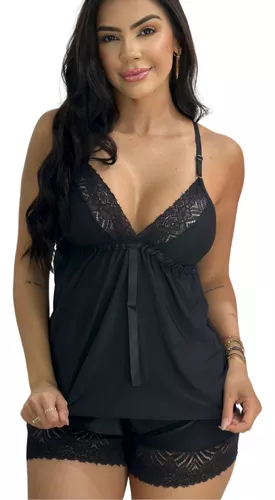 Short Doll Pijama Feminino Adulto Baby Doll Liso Renda Sexy