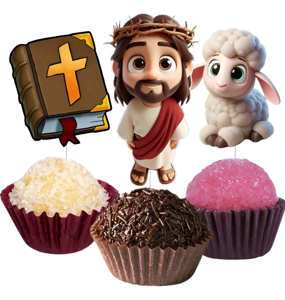 Toppers Doces Jesus Ovelha Bíblia Festa Aniversário Tag