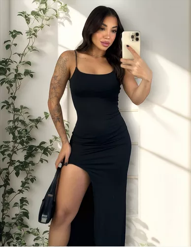 Vestido Com Fenda Feminino Longo Modelador Com Suplex Alça