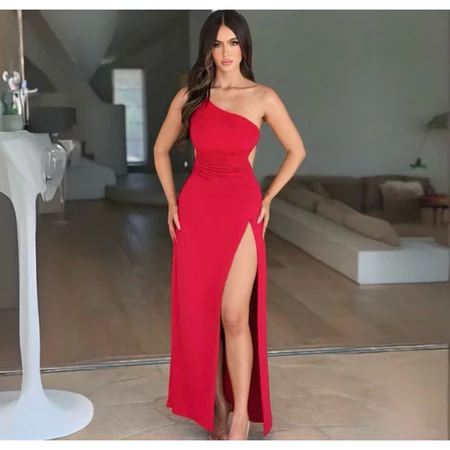 Vestido longo de uma alça Fenda na perna tendência para casamento, formatura e festas