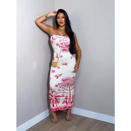 Vestido Tomara Que Caia Longo Inspiração Farm Midi